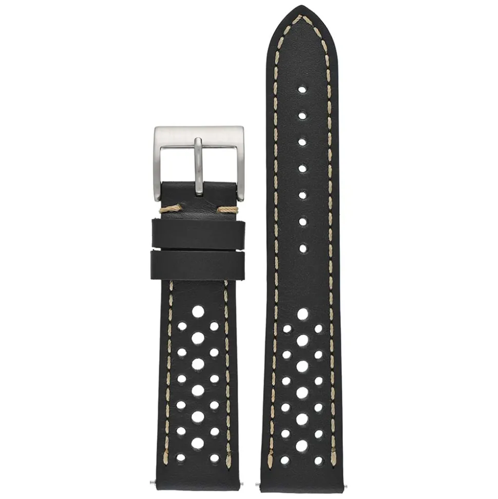 Racing Black Perforated Italian Leather Watch Strap