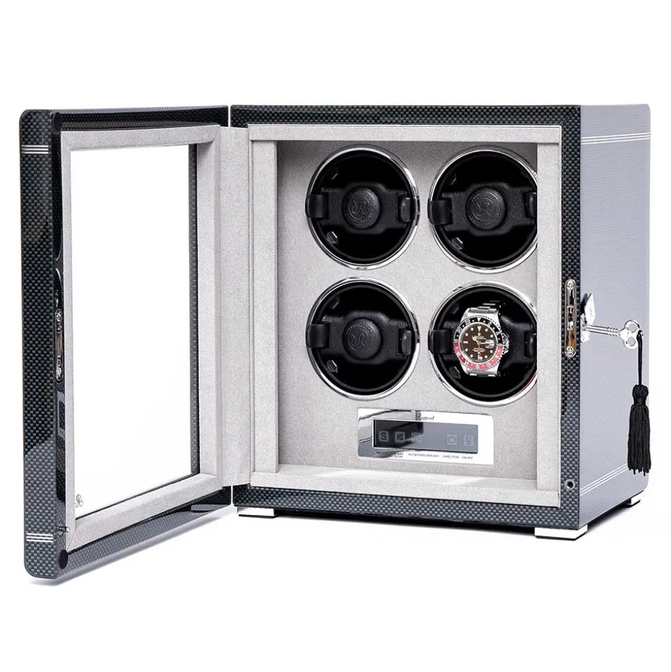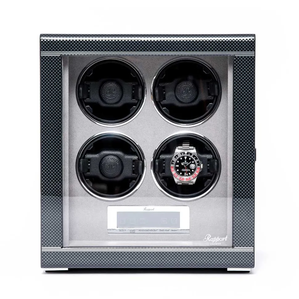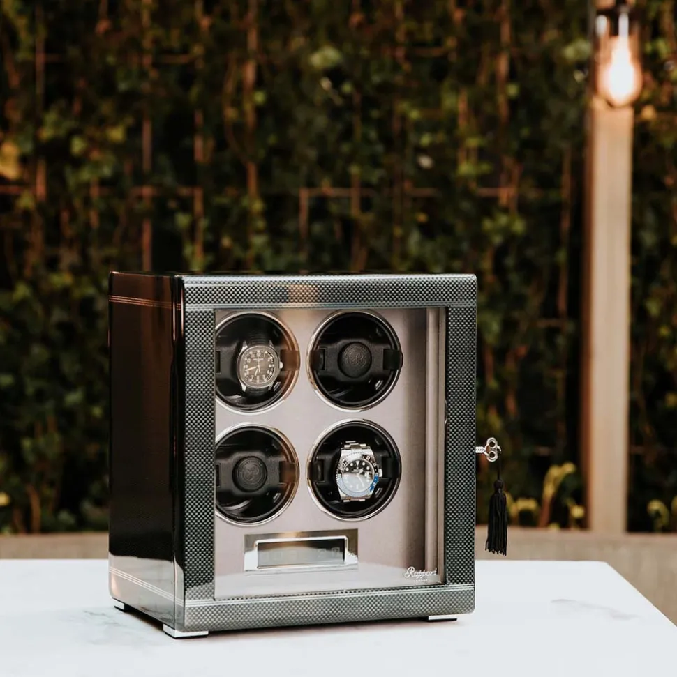 The Rapport Formula Quad Watch Winder is for the serious watch enthusiast. It displays up to four fine watches elegantly and ensures that all your timepieces are ready to wear whenever you need them.