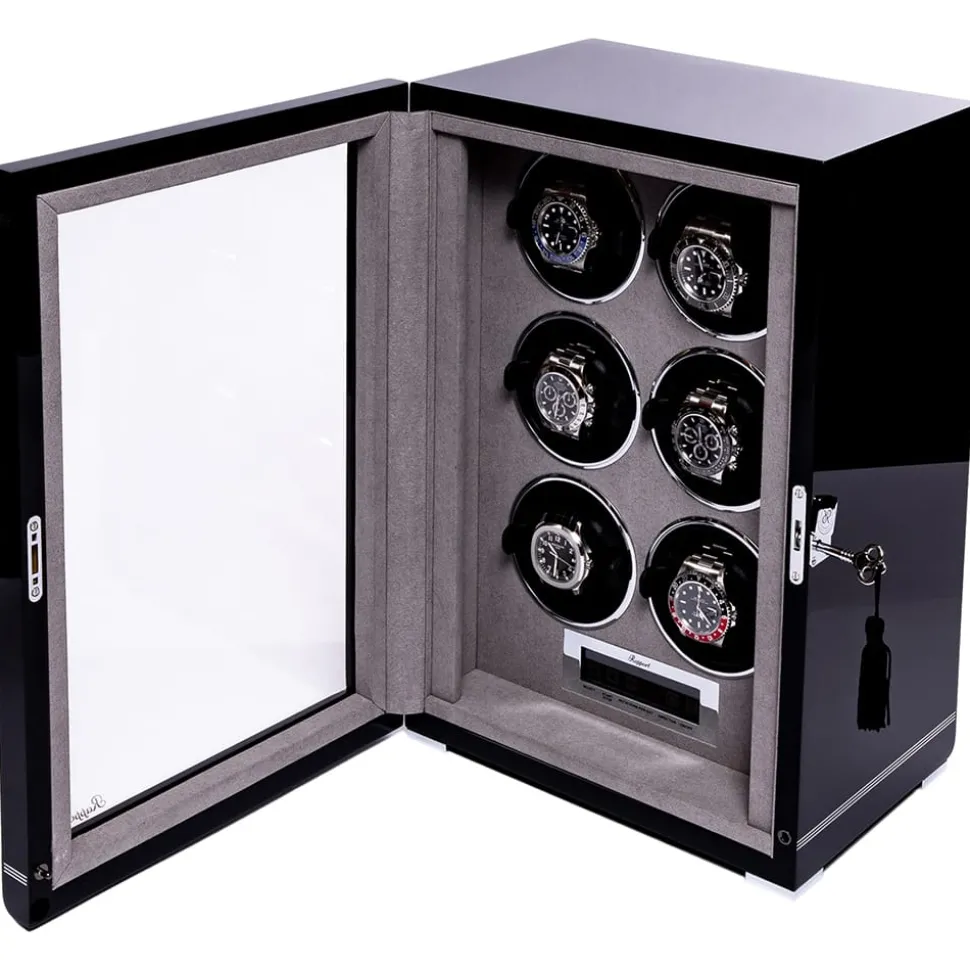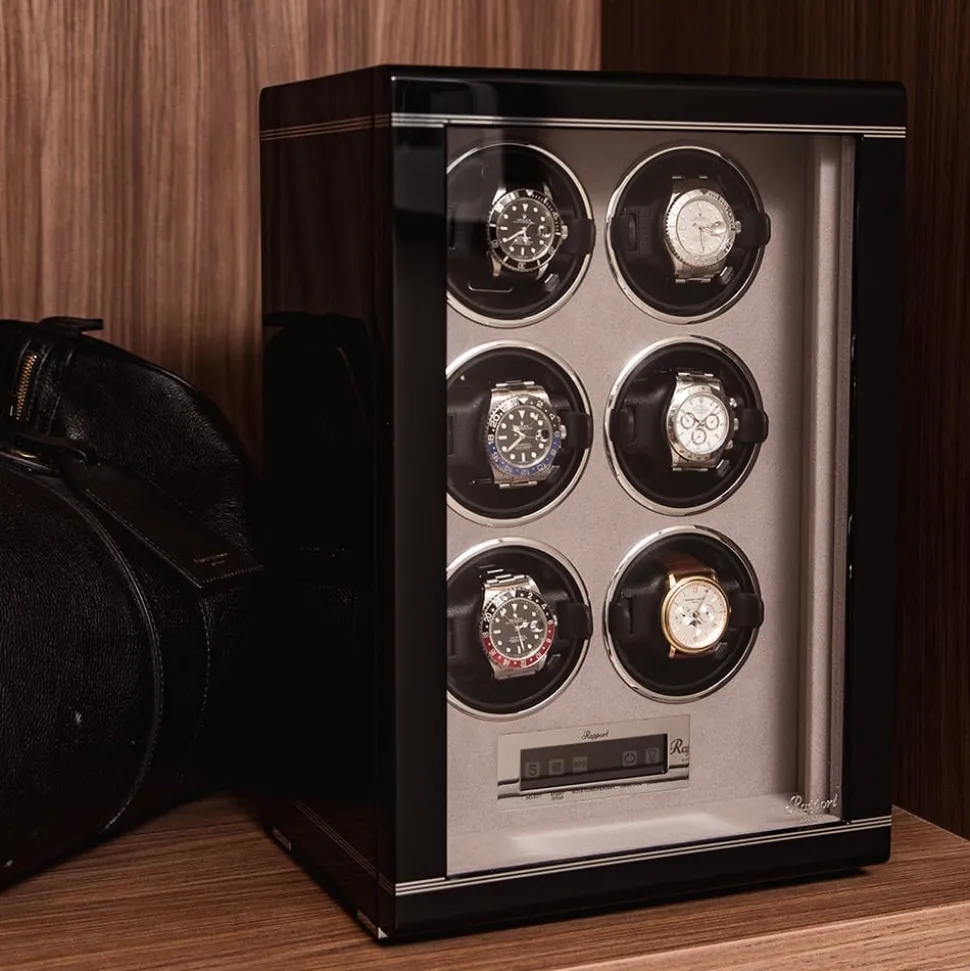 The Rapport Formula Six Watch Winder is for the serious watch enthusiast or collector. It displays up to six fine watches elegantly and ensures that all your automatic timepieces are ready to wear whenever you need them.