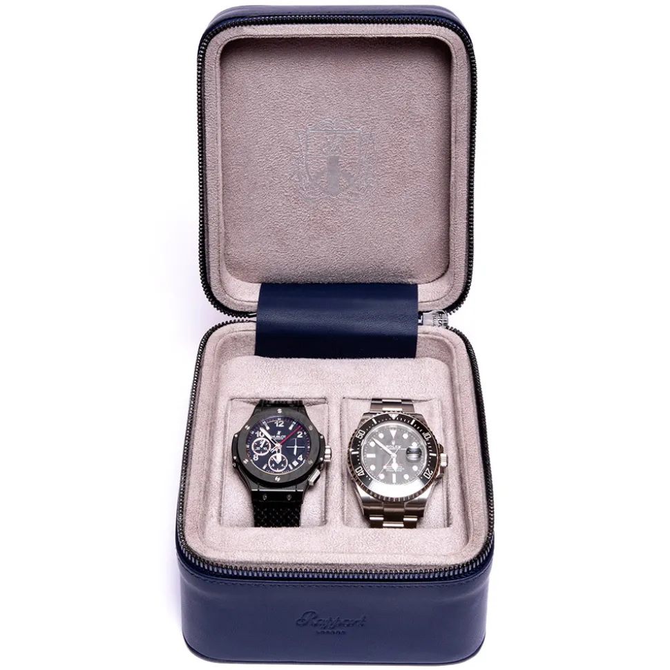 The Rapport Hyde Park Two Watch Zip Case in Navy is the ultimate gift for the modern gentleman.