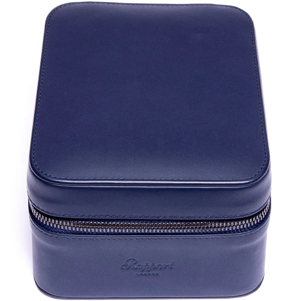 This Rapport Hyde Park Two Watch Zip Case in Navy Leather is an elegant way to store your precious timepieces.