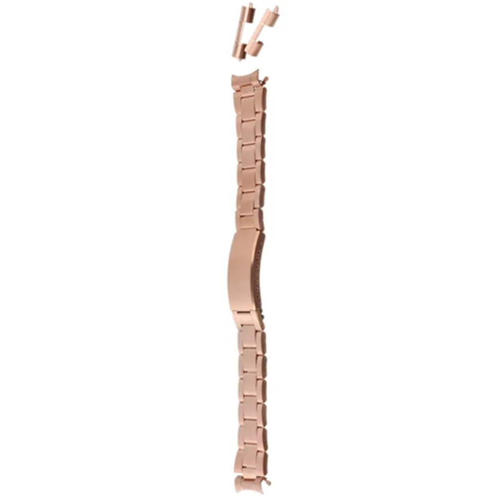 Our Salisbury Rose Gold PVD Watch Bracelet with Straight & Curved Ends will instantly transform a classic timepiece. Available in two sizes: it fits watches with lug sizes 12-16mm and 18-22mm. Also, it is supplied with both straight and curved end pieces so that you can be sure it will fit your watch case.