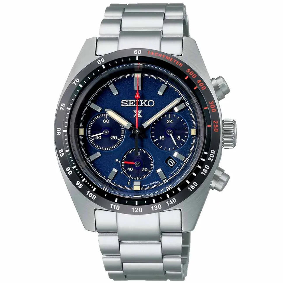 Firstly, powered by a quartz solar movement calibre V192, the Seiko Prospex Speedtimer 1969 Recreation Watch boasts impressive accuracy at +/- 15 seconds per month. Also, with a fully charged battery, it operates seamlessly for up to 6 months. Furthermore, encased in stainless steel, the watch has a black tachymeter bezel. Moreover, it includes a 24-hour hand, a chronograph capable of measuring up to 60 minutes in 1/5-second increments, and a handy date display.