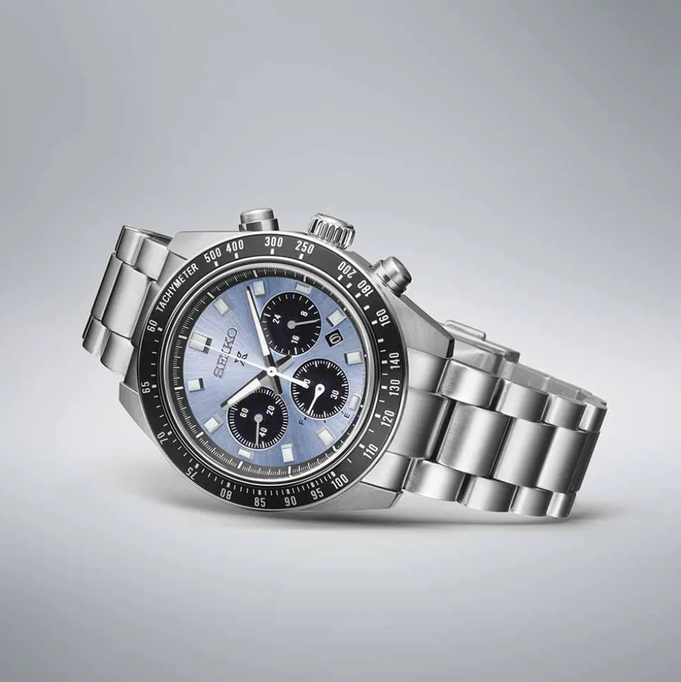 Discover the Seiko Prospex Speedtimer ‘Crystal Trophy’, a timepiece that draws inspiration from the elegant lines of the world’s first automatic chronograph watch from 1969. However, this latest version, comes with a modern twist – it’s conveniently solar-powered, harnessing energy from both natural and electric light sources. In the 1960s, Seiko announced itself on the international sports timing stage with a whole new generation of high-precision equipment endorsed by international sports federations at many of the world’s leading sports events. The glass-blue colour and sunray pattern of the dial of this Speedtimer is designed to represent the crystal trophy awarded to athletes in high profile competitions.