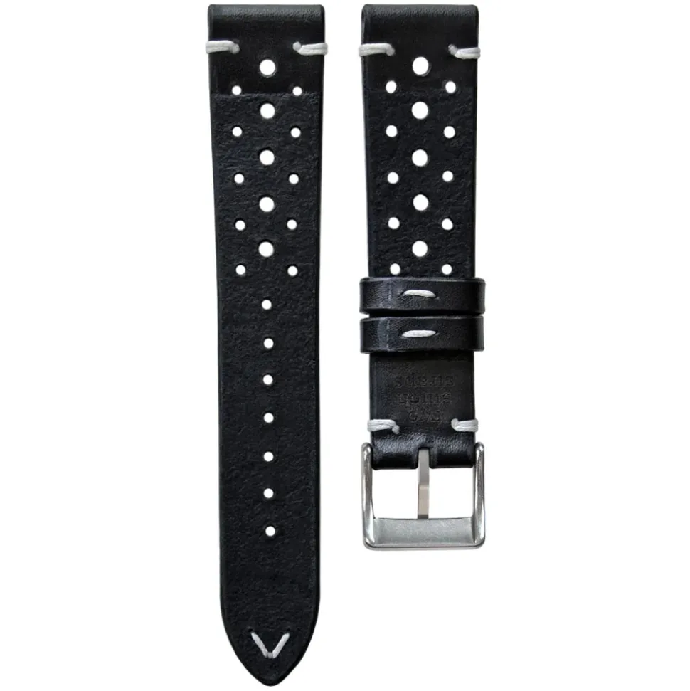 Silverstone Handmade Racing Watch Strap in Black Leather
