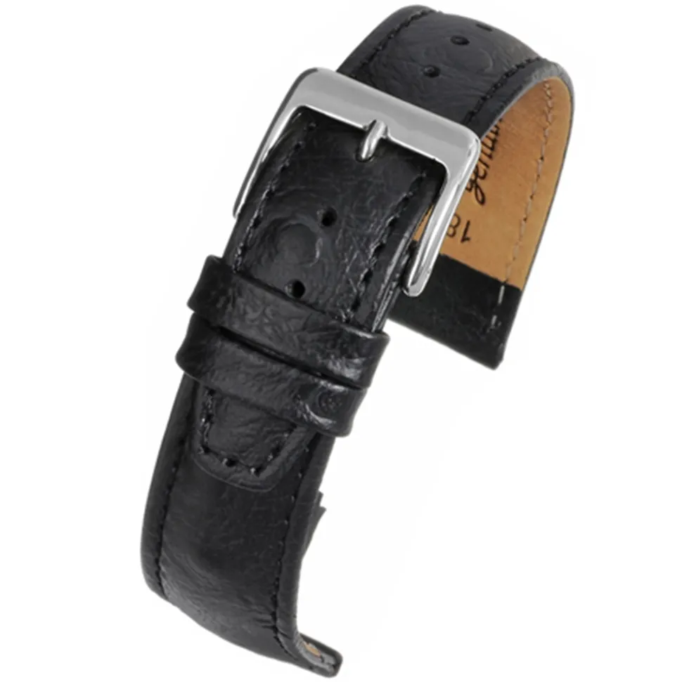 Made from genuine leather, this Todd Black Ostrich Grain Watch Strap is available in 6 popular sizes. From 12mm wide through to 22mm, this classic strap will give any watch an instant refresh.