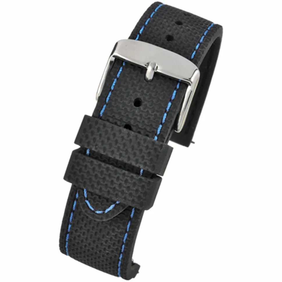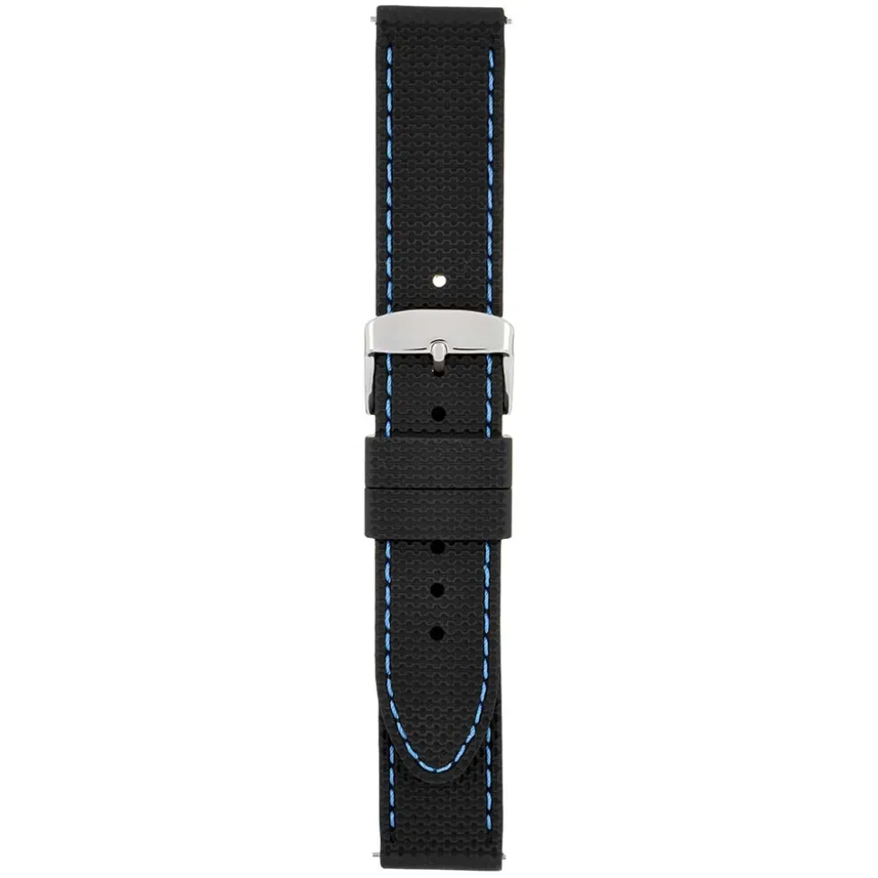Velocity Black Silicone Quick Release Blue Stitch Watch Strap