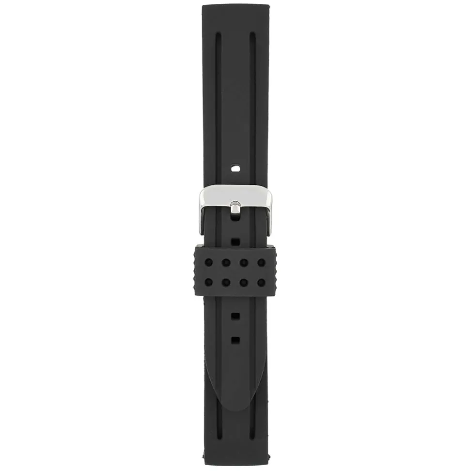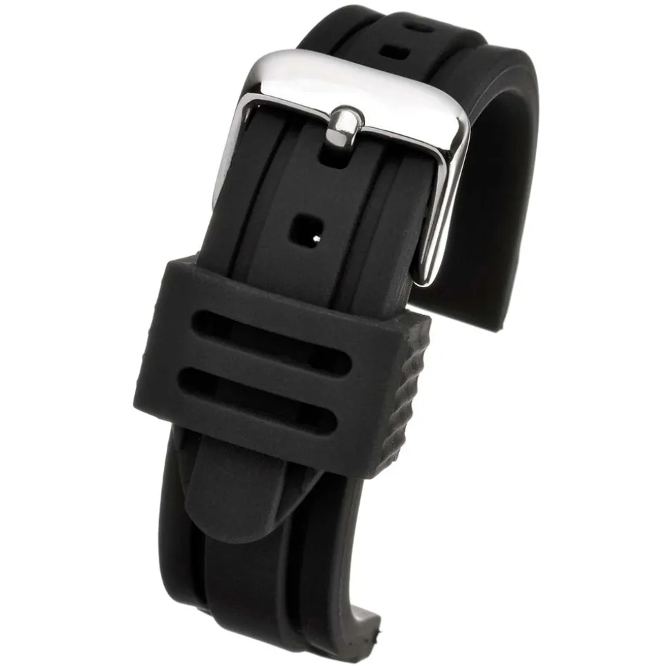 Our Waterline Black Silicone Sports Watch Strap is perfect for sports watches and anyone with an active lifestyle. Available in 5 popular sizes from 18mm to 26mm, it is made from high grade silicone.