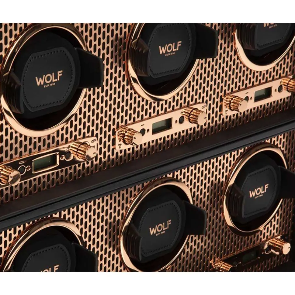 This WOLF Axis 6 Piece Watch Winder combines copper coated steel and vegan leather to bold effect. With sleek lines and modern styling, Axis provides a safe haven for your watch collection. Moreover, Axis ensures your watches are ready to wear at all times, protected and beautifully displayed.