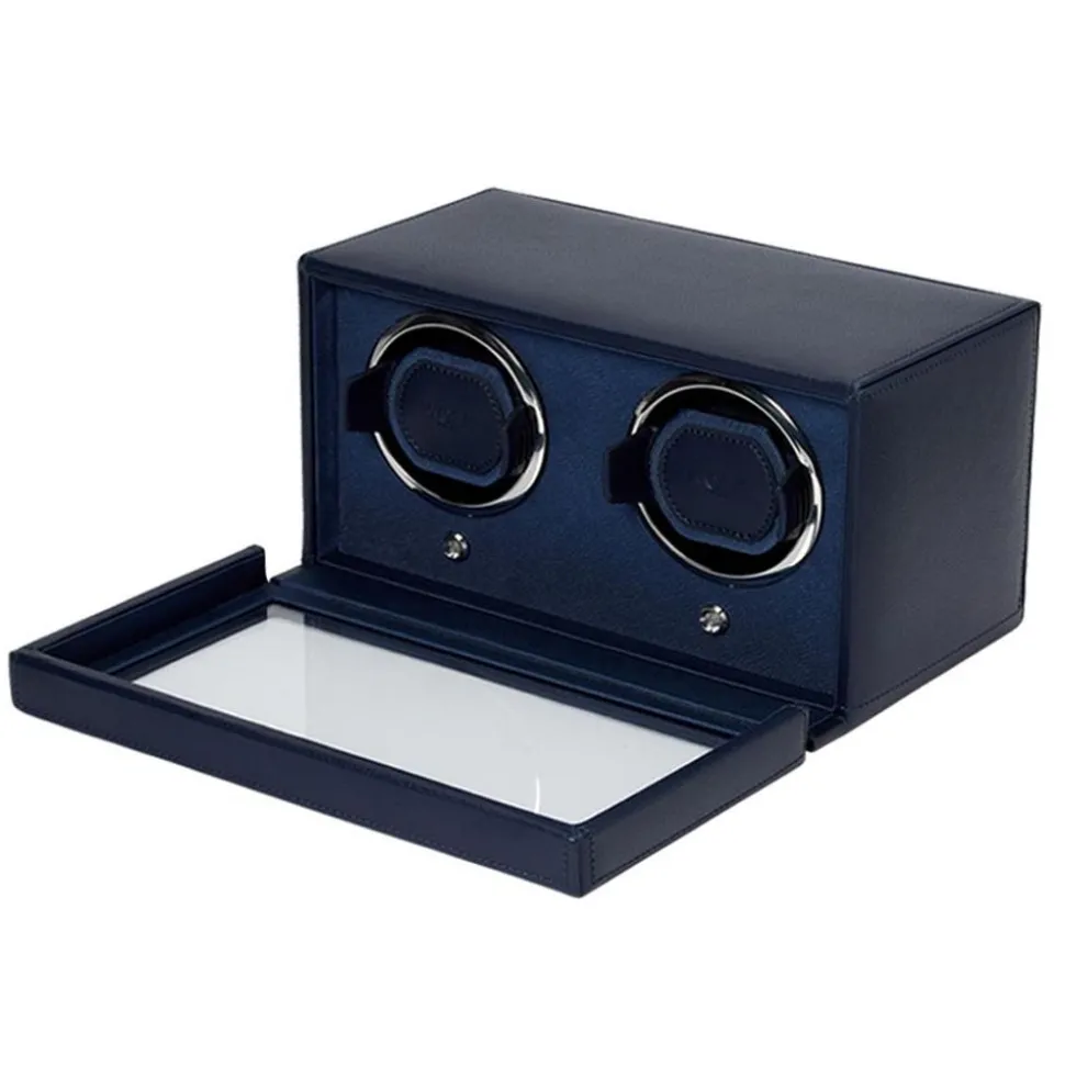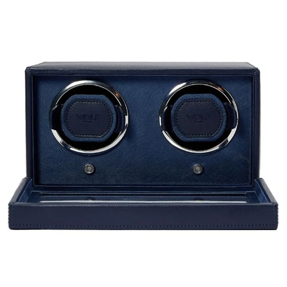 The WOLF Cub Navy Double Watch Winder takes care of your watches with ease. Young, smart and uncomplicated, it’s a safe haven for a pair of automatic timepieces. Ensuring your watches are ready to wear at all times, it also protects and displays them,.