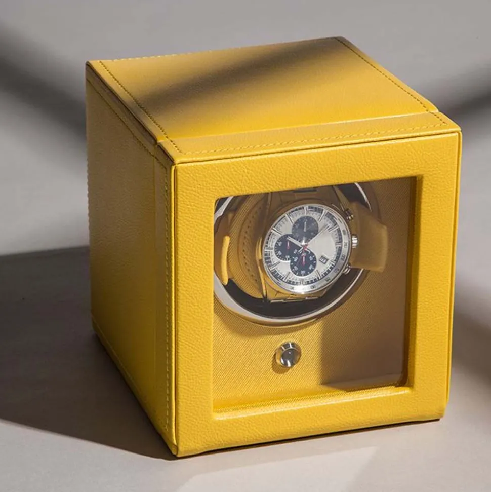 The WOLF Cub Yellow Watch Winder takes care of your watch with ease. Young, smart and uncomplicated, it’s a safe haven for your automatic watch. Ensuring your watch is ready to wear at all times, it also protects and displays it.