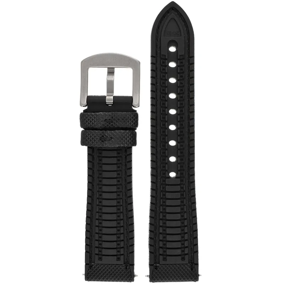 Yachting Black Waterproof Rubber Hybrid Watch Strap