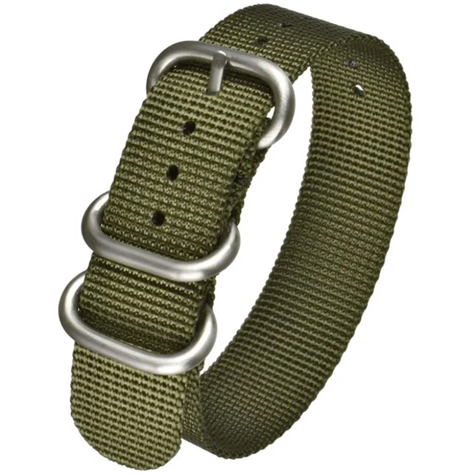 Our Zulu Green Watch Strap is similar in style to the NATO, but is fitted with heavy duty buckles and keepers. Hugely popular in recent years, a Zulu strap is in one long piece so it threads underneath the watch case. Originally developed during WWII for pilots and the military, the strap could be fitted to a watch case with solid lugs therefore making the watch more durable.